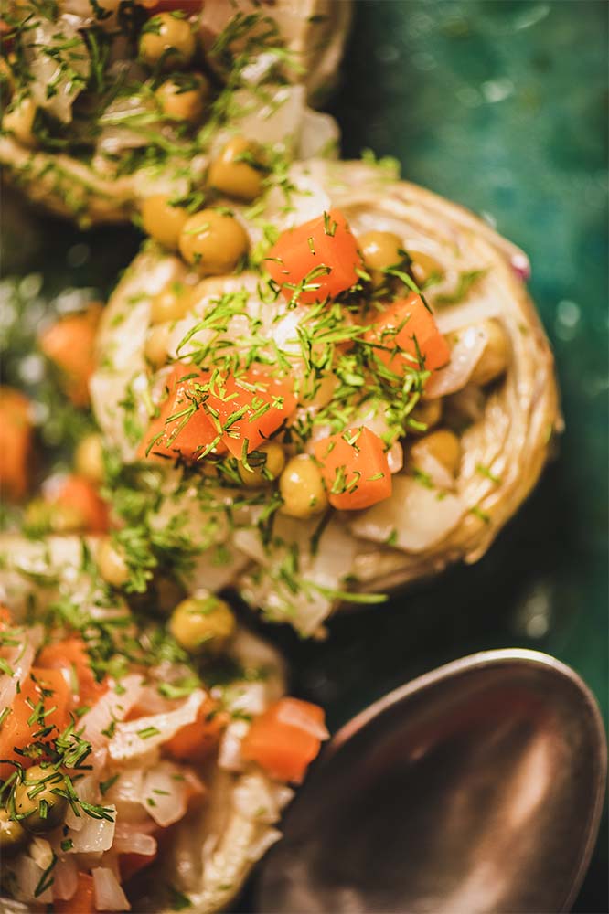 - מכינים קציצות מהתערובת ומשדכים אותן לתחתיות הארטישוק.