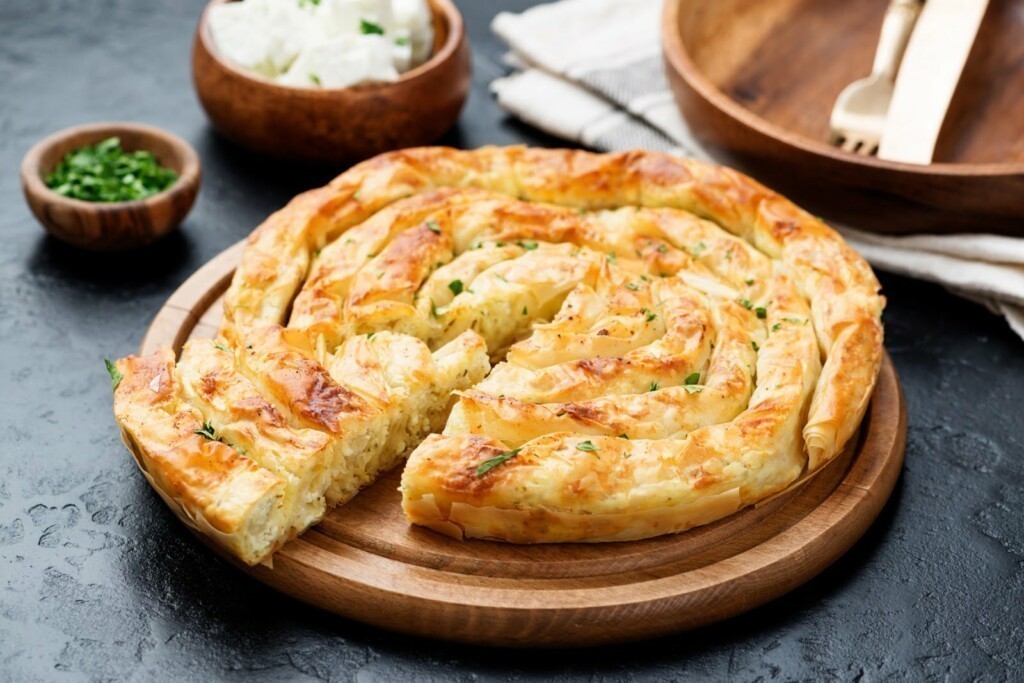 2. על נייר אפייה פתחו עלה פילו אחד, כשהצד הרחב אליכם.