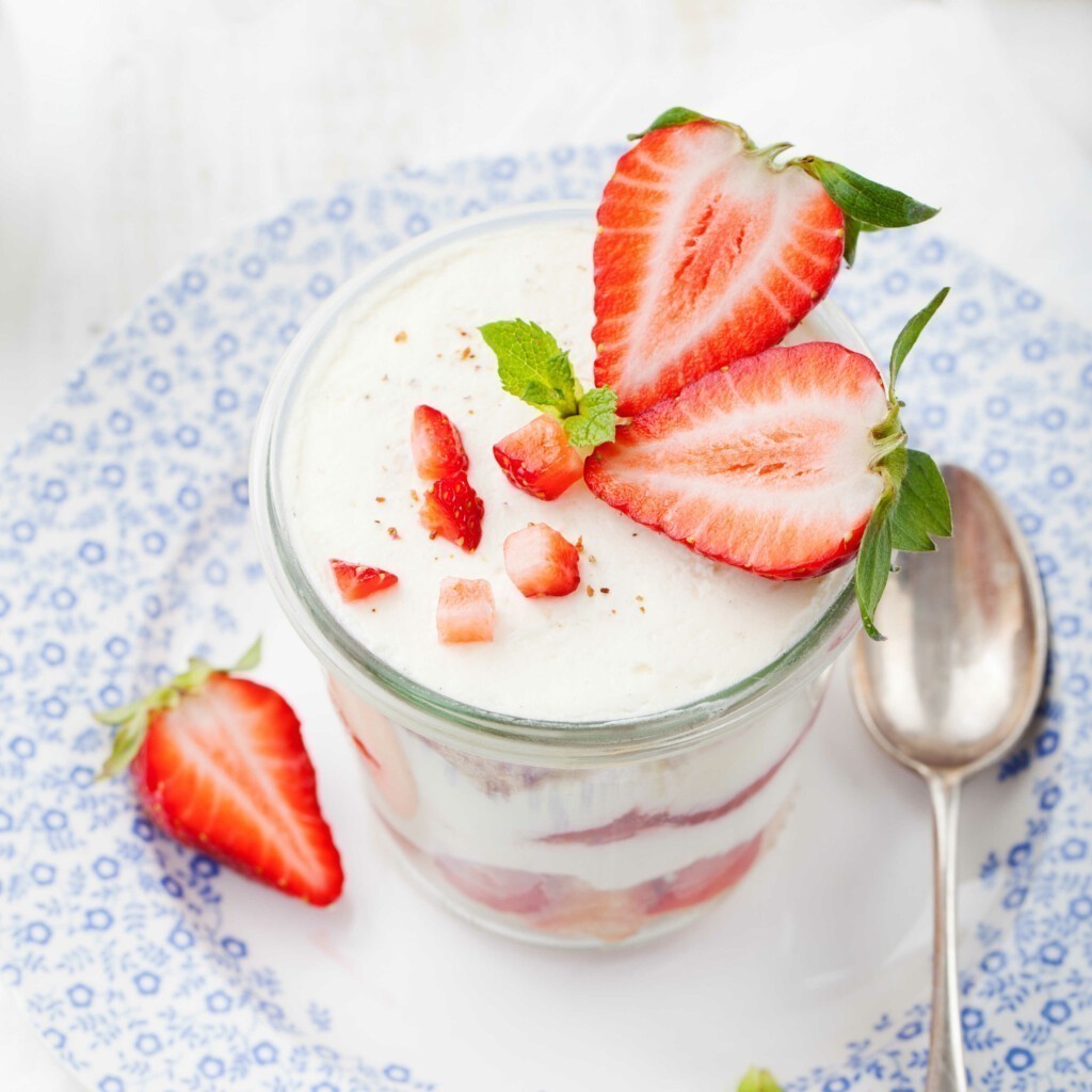 - שמים 3-2 כפות ביסקוויטים בכל כוס הגשה ומעליהם 1-2 כפות פירות חתוכים (נזכור להשאיר מהפירות החתוכים לקישוט)
