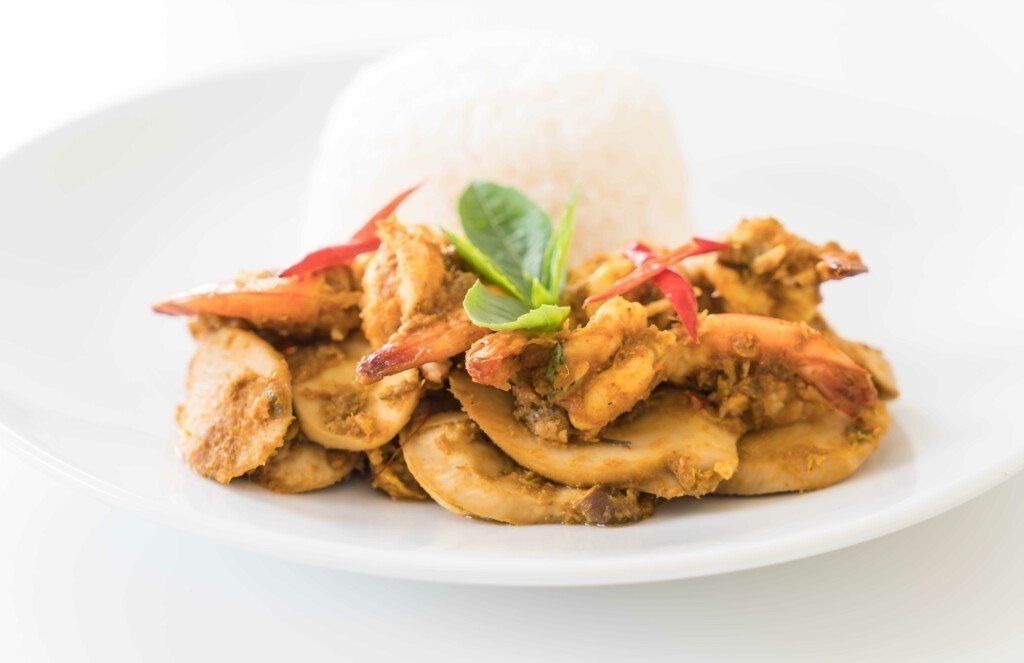 1. מניחים את רצועות העוף בקערה עם אבקת קארי, כורכום ורוטב סויה. מערבבים היטב ומניחים בצד.